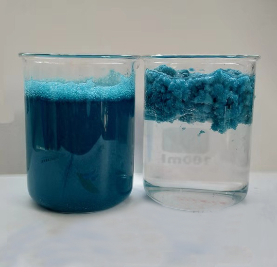 油漆在循環水中帶有一定量負電性,與帶有高正電荷全有機高分子化合物接觸,電荷轉移,對漆滴產生很強的吸引力,當漆滴被“捕捉”吸附后它利用極性不同的親和性講漆滴完全包裹,并穿透漆滴,破壞涂料的功能基團,使其完全消除粘性,形成不穩定之細小顆粒,并帶動被包裹破粘的漆滴上浮,同時將水中油漆重金屬去除,并控制循環水生物活性,使循環不易產生惡臭,同時可降低COD含量及廢水處理成本。高等分子量的環保微生物絮凝劑再通過在分子之間的“橋架”作用,聚集被破壞的漆霧和雜質成較大的基團,使其堅固和粘合,使聚集基團在系統中上浮速度加快,使其形成較大顆粒而上浮,與水分離,并結成漆渣浮于水面,凈化水質。同時藥劑內的防腐緩蝕劑成份對設備金屬表面進行防腐處理從而保護設備不被腐蝕損傷。